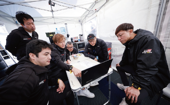 坪井はスタートから1時間20分をドライブし、本調子を取り戻した状態でピットインすると、26周を終えピットイン。豊田大輔に交代した。少しずつ路面は乾いてきているもののまだ完全にドライではなく、僚友のTGRR GR Yaris M Conceptがスリックを履いたのに対し、安全を重視しウエットタイヤを装着し大輔を送り出した。