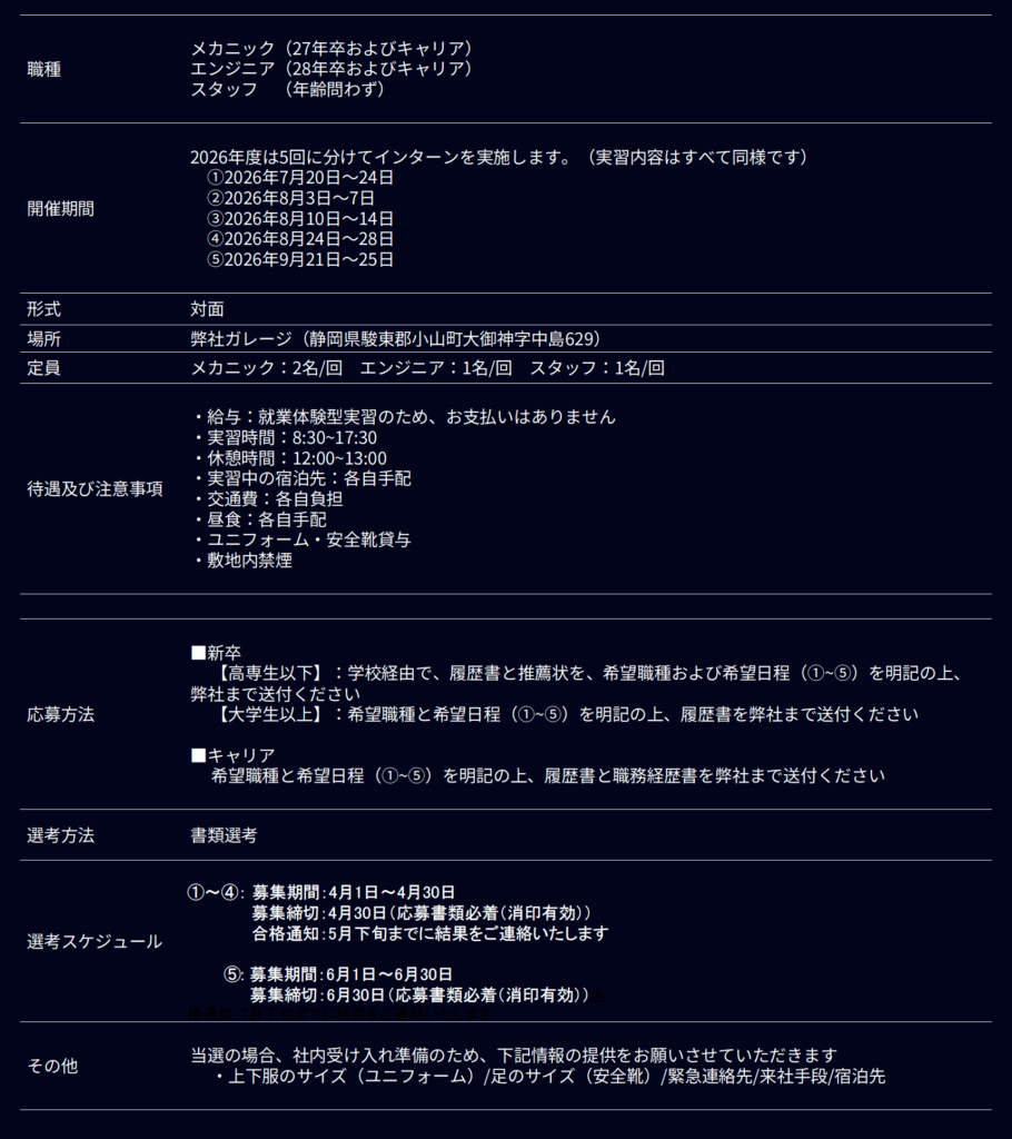 メカニック業務だけでなく社会人としての考え方も教えていただき自分自身の成長を実感できてます。